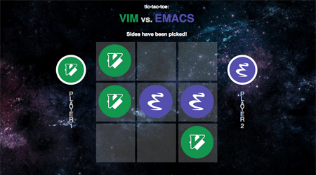 Real-time game of tic-tac-toe, nerd edition. Wage war for your favorite text editor.
